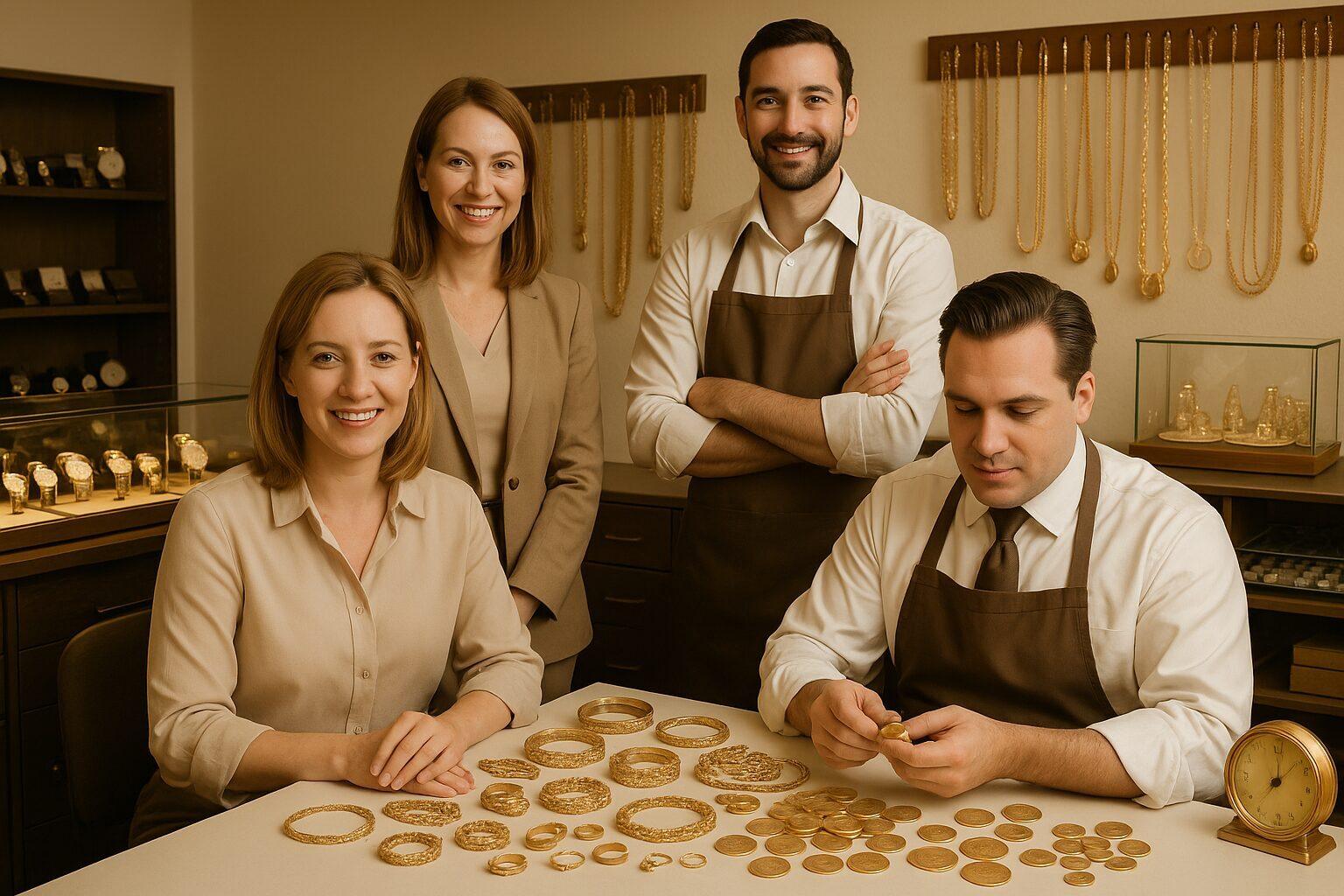 Unser Team vereint Expertise aus verschiedenen Fachbereichen, um Ihnen als Kunde in Geislingen an der Steige, Ulm, Göppingen, Stuttgart und der gesamten Region einen Service auf höchstem Niveau zu bieten. Mit unserer langjährigen Erfahrung, modernster Technik und einer großen Portion Leidenschaft für Edelmetalle, Schmuck und Uhren sorgen wir dafür, dass jedes Anliegen mit größter Sorgfalt behandelt wird. Wir nehmen uns Zeit für Ihre Fragen, beraten Sie individuell und begleiten Sie transparent durch jeden Schritt – vom ersten Kontakt bis zum Abschluss einer Transaktion. Vertrauen Sie auf unsere Diskretion, wenn es um größere Werte oder diskrete Abwicklungen geht. Auch außerhalb der üblichen Öffnungszeiten nehmen wir uns gerne Zeit für Ihre Anliegen. Ob Goldankauf, Münzbewertung, Uhrenservice oder Schmuckreinigung – wir sind Ihr zuverlässiger Partner. Kommen Sie vorbei und überzeugen Sie sich selbst von unserem Engagement und unserem professionellen Teamgeist. Wir freuen uns darauf, Sie persönlich kennenzulernen und Ihnen bei allen Fragen rund um Edelmetalle, Schmuck und Luxusuhren weiterzuhelfen.